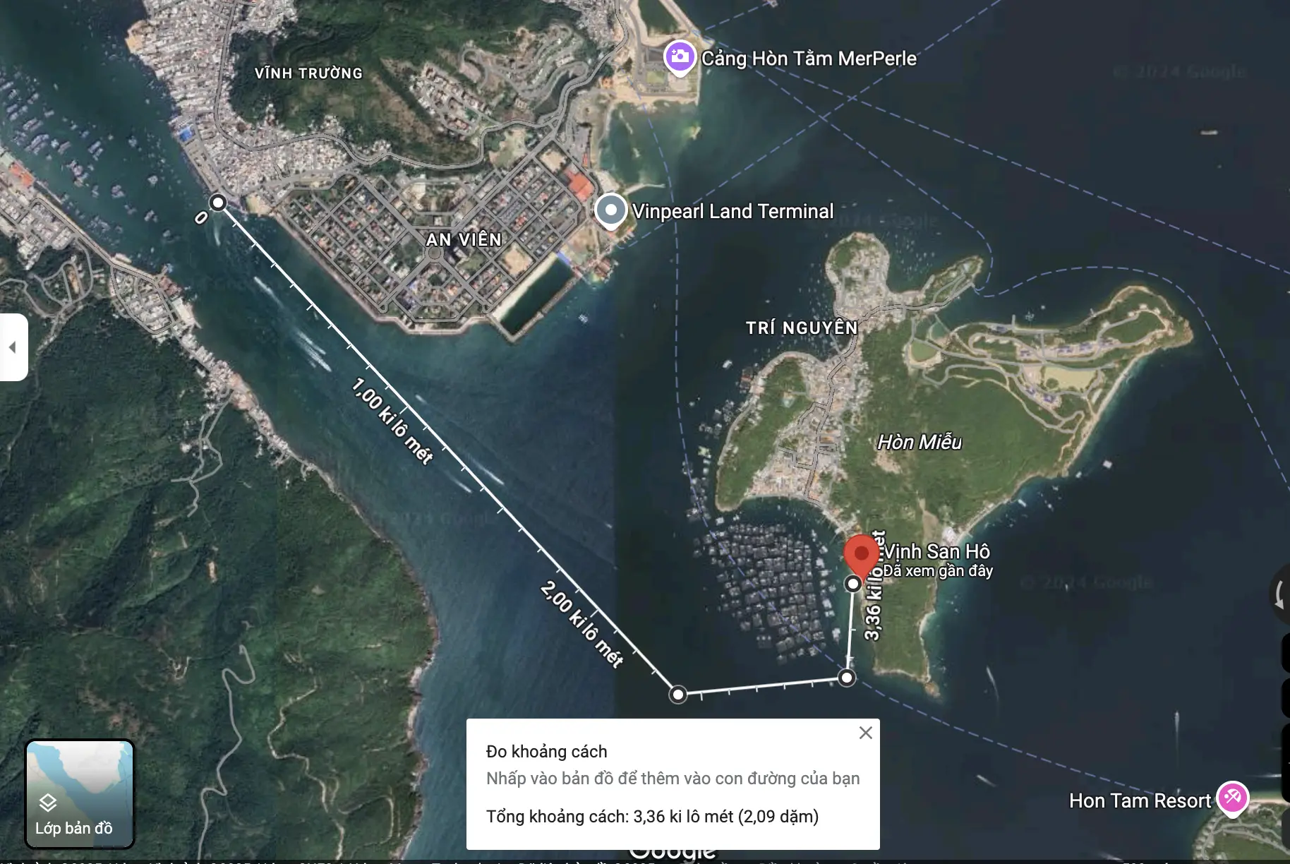 Khoảng cách với đất liền với Vịnh San Hô 2